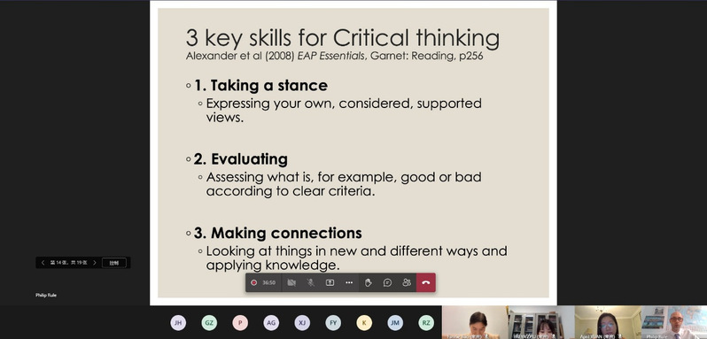 在本次线上教学研讨会举办之前,由国际交流合作处牵头,向各位特邀与会教师下发问卷调查,汇总目前老师们在英语教学过程中遇到的问题和困扰,并将梳理结果提前与Philip教授及其教师团队沟通。会上,Philip教授总结了教师在英语教学过程中遇到的瓶颈问题,并从教学资源、教学内容、教学方法、教学测试等方面分享了英国教师团队在过去多年教学实践中做出的努力与突围,英语教师仍需进一步不断打破英语教学理念的藩篱,切实提升专业教学能力,强化课程内涵式建设。