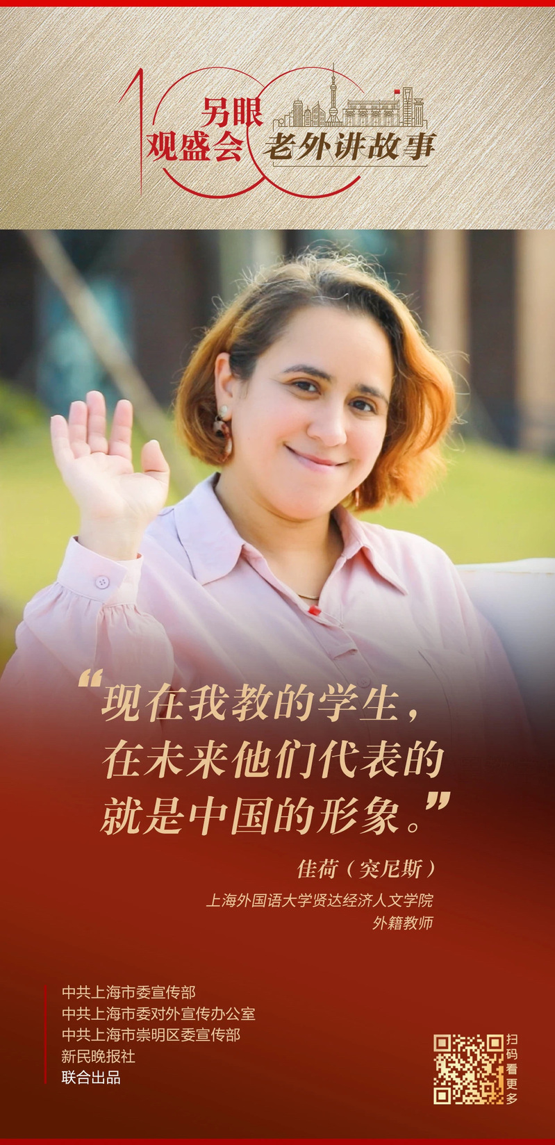 2022年10月16日,中国共产党第二十次全国代表大会在北京隆重开幕。这场盛会不仅决定着中国的未来发展,也影响着人类的前途命运,在上海外籍人士中引发强烈反响。完美官网突尼斯籍外教Hend(佳荷)应邀参与2023年“老外讲故事”第三季《另眼观盛会》的录制,该录制在完美官网崇明校区实地采景。Hend(佳荷)老师用她亲眼所见、亲身感受和亲历故事,讲述对中共二十大的思考和感悟。供稿 | 国际交流合作处(留学服务办公室)