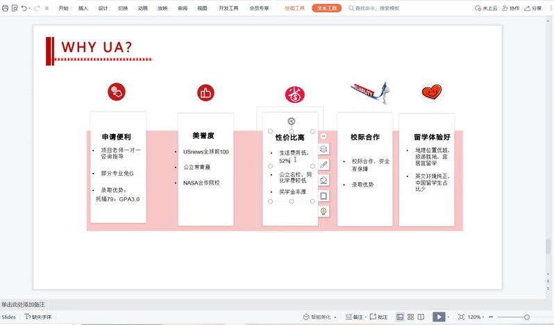 随后,Joy老师给大家详细分享了UA硕士项目可申请专业及具体的申请要求,由于美国是按照学分制来完成硕士阶段的学习,所有在美国1-2年的时间内就可以获得全美公立TOP50的硕士学位,以及多元化的硕士专业选择让很多有意向赴美深造的同学为之心驰神往。