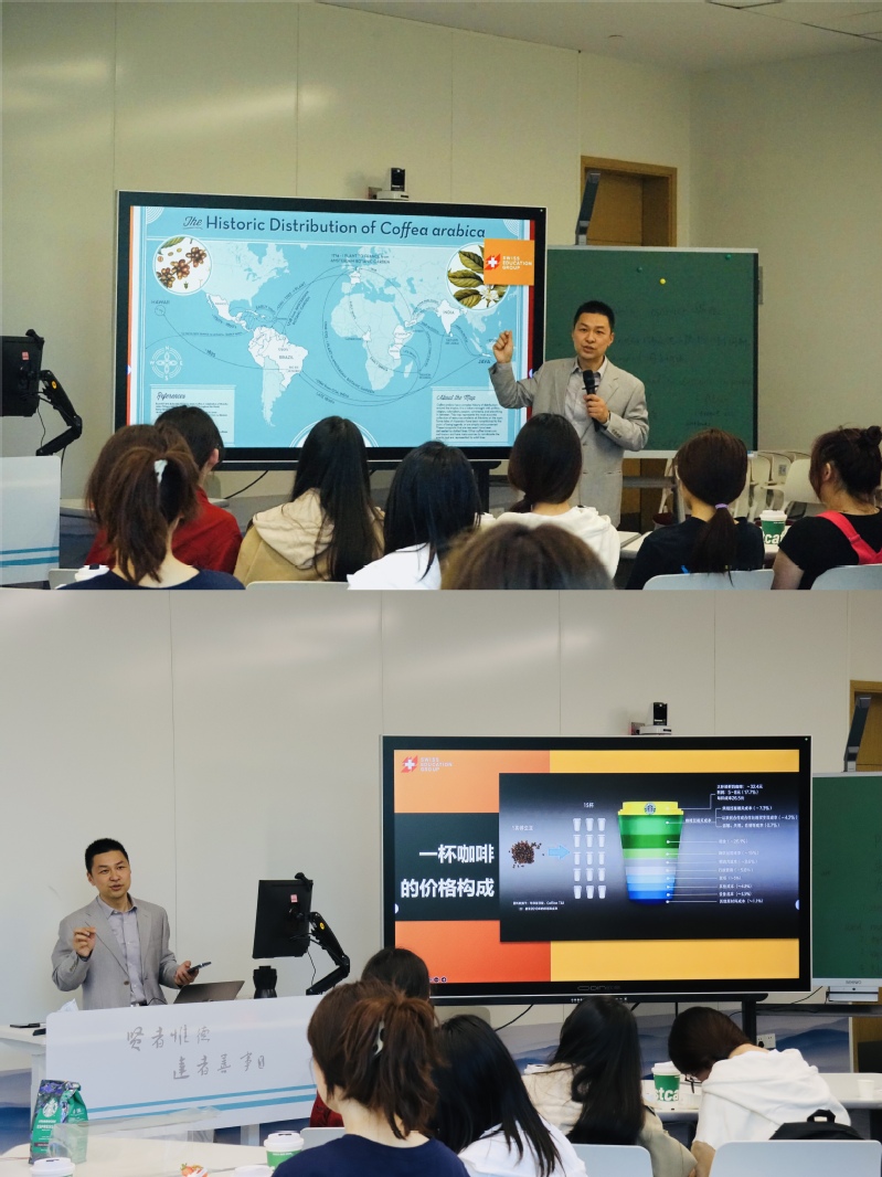 2023年5月25日下午,国际交流合作处邀请完美官网瑞士合作方-瑞士酒店管理学院SHMS(2023QS世界酒店管理专业排名Top3)中国办公室国际课程总监何老师为完美官网酒店管理专业的同学带来了一场韵味无穷的咖啡文化与品鉴实操主题workshop,完美官网梁副校长、徐副校长莅临指导。