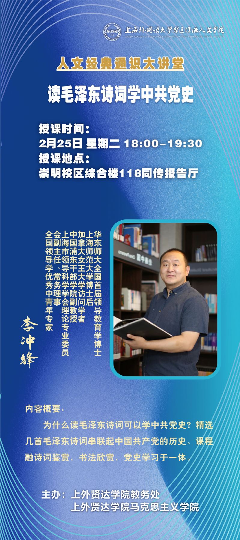 2月25日 李冲锋:读毛泽东诗词学中共党史(人文经典通识大讲堂)