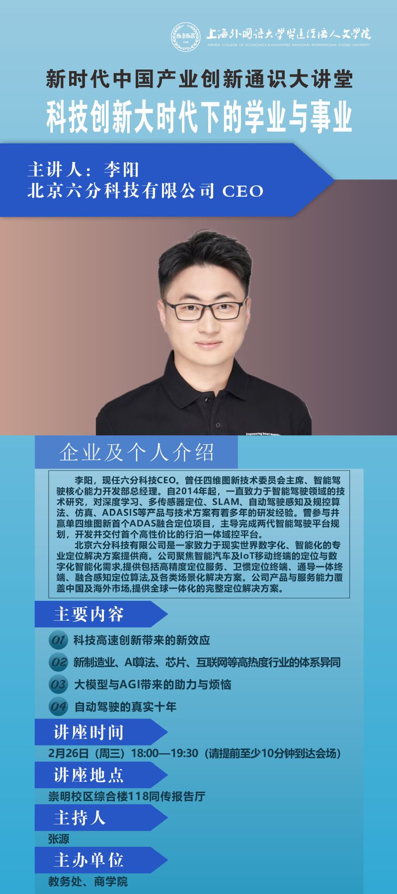 2月26日 李阳:科技创新大时代下的学业与事业(新时代中国产业创新通识大讲堂)