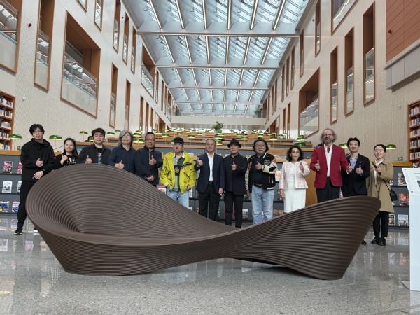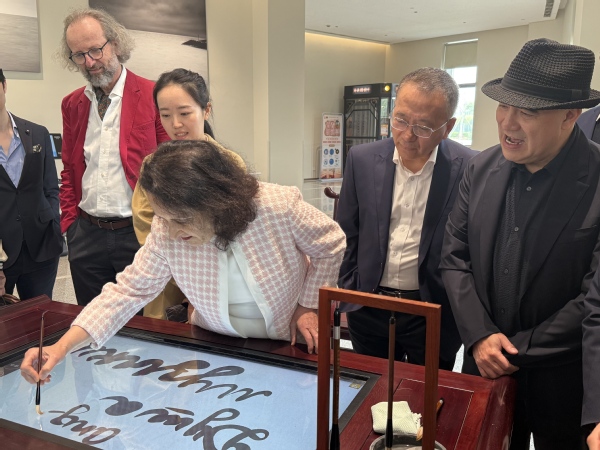 艺术家一行先后参观了校史展、图文信息中心等,详细了解学校建校21年来的发展历程、教育教学成果及国际化办学特色,对“一切以服务学生发展为中心”的办学宗旨给予高度评价。在图文信息中心智慧书法台,孔祥东老师即兴挥毫写下了“樂來樂好”四字墨宝,将音乐韵律与传统书法巧妙结合,这份承载科技与艺术的独特礼物,为校园增添了一份独特的文化印记,也为此次智慧校园之行留下了浓墨重彩的一笔,让在场众人感受到了艺术与教育深度交融的特有魅力。