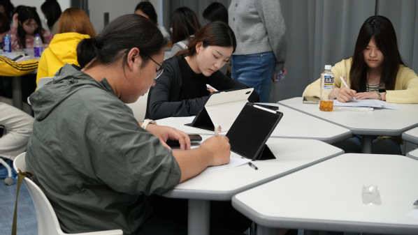 同学们认真参与,并在创作结束后积极与教授互动提问,教授充分肯定学员对三幕式结构的掌握,并分别给予点评。在最后环节,同学们将理论快速转化为实践,为本次工作坊画上充满启发的句号。