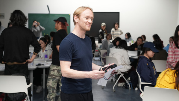 英国桑德兰大学知名教授Lawrence Brannon正在为同学们分发任务单