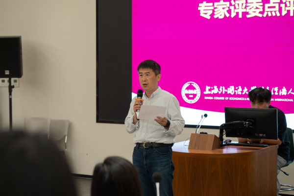 李征教授在10 支团队讲演完毕后,对各团队的表现进行了专业、细致的点评。他对所有团队的精彩表现给予了充分肯定,并指出各团队在讲演内容上、讲演礼仪等问题上的共性问题。他建议各团队进一步强化论点的逻辑性和层次感,在有限的时间内尽可能多地传递有效信息,同时优化着装以在规范合宜的同时服务讲演内容。