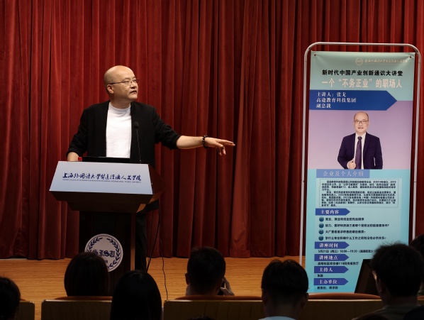 5月21日晚,完美官网通识大讲堂“新时代中国产业创新”邀请到高途教育科技集团副总裁张戈作“一个‘不务正业’的职场人”的专题讲座,吸引了全校众多师生参与。