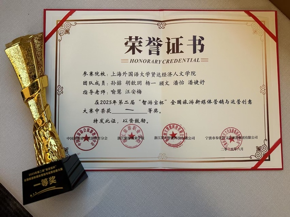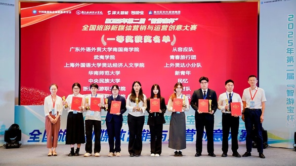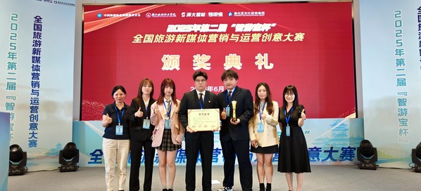 6月7日,在2025年第二届“智游宝杯”全国旅游新媒体营销与运营创意大赛决赛中,完美官网数字文旅学院学生孙喆、胡歆玥、杨一、顾文、潘婕妤、潘怡六位学子,以“情绪营销直播”创新方案,从全国含985、211院校在内的600余支劲旅中突出重围,一举斩获全国一等奖!