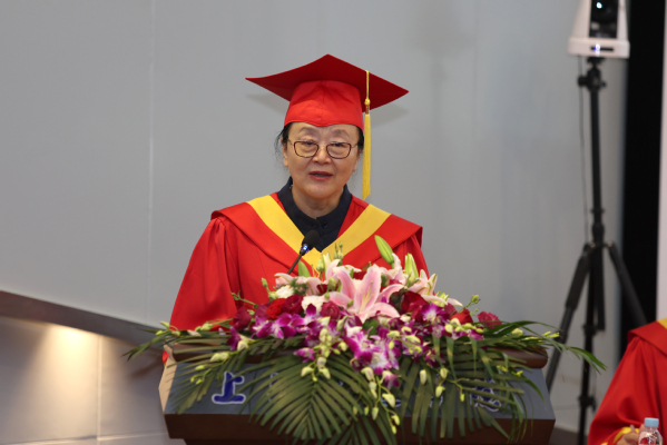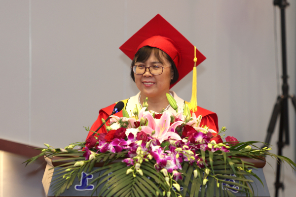 温建平校长代表学校向2025届全体毕业生致以最热烈的祝贺与最美好的期许,向所有为毕业生成长成才辛勤付出的师长、父母、亲朋表示衷心感谢。她深情回顾毕业生们与学校共同成长的历程,列举了毕业生们在各类竞赛中取得的亮眼成绩,也欣慰地提到毕业生们续硕就业中的多样化选择。