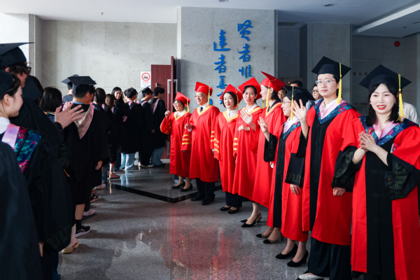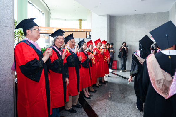 典礼开始前,校党政领导、学院领导列队欢迎毕业生