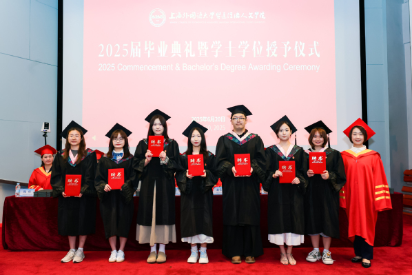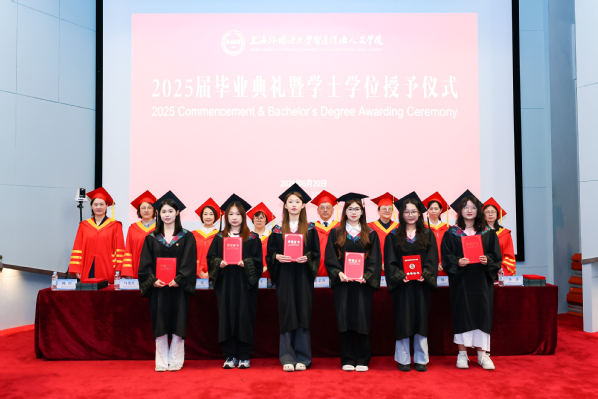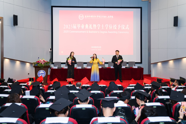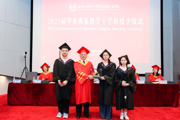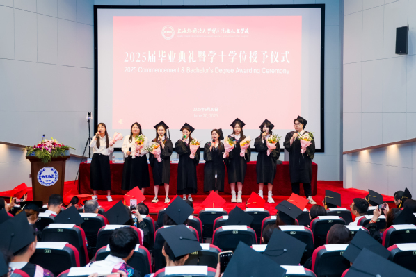 随后,梁副校长宣读了荣获2025年上海市高等学校优秀毕业生、2025年校优秀毕业生学生名单,校领导为学生代表们颁奖。