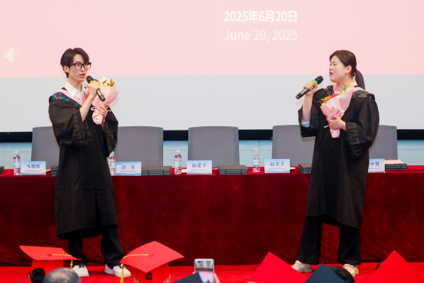在校生代表艺术与传媒学院新闻学(新媒体)专业22级学生杨秋实向即将踏上新征程的2025届学长学姐们送上最诚挚的祝福,并将以学长学姐们为榜样,不负时代,不负韶华,不负母校的培养,为国家和社会贡献青春力量。