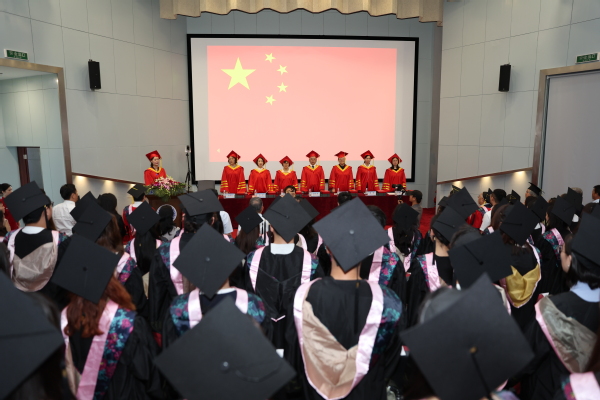 毕业典礼在雄壮的国歌声中拉开帷幕