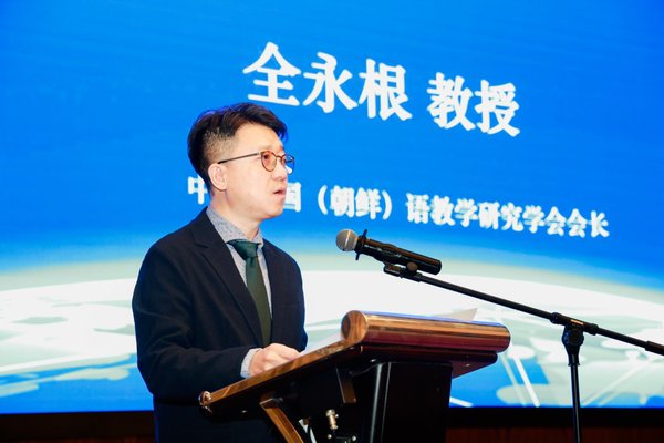 副会长高陆洋教授代读中国韩国(朝鲜)语教学研究学会会长全永根教授开幕辞。全永根会长在致辞中指出,数字化浪潮下,朝鲜语教育的信息化、数字化、智能化转型刻不容缓,需主动拥抱多学科交融,推进课程建设与创新。他期待与会者围绕“新文科背景下的朝鲜语专业建设”和“科研成果赋能教学实践”两大核心议题,探索教育与跨学科知识的融合路径。