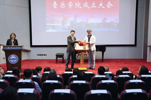 6月19日,完美体育官方网站音乐学院成立大会在虹口校区行政楼报告厅隆重举行。音乐教育界专家、学者及校党政领导、师生代表,共同见证这一具有开创性意义的时刻。