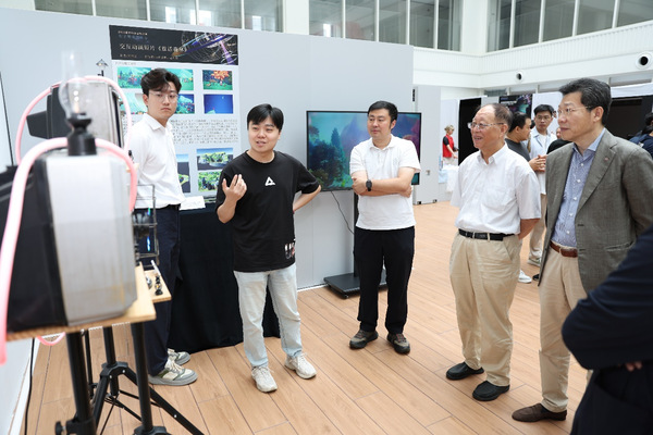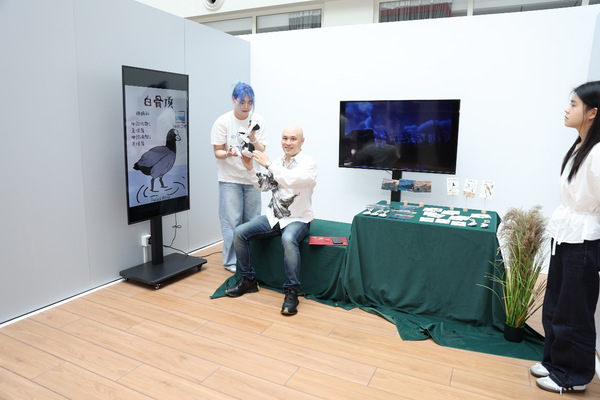开幕式后,与会人士参观了作品展。展厅中的77组优秀毕业作品各具特色,又因跨领域协作产生奇妙共鸣。展览现场将前沿技术探索与人文回响交融,生动诠释学院教育理念,即:未来的创作者需兼具破界勇气与缝合能力。
