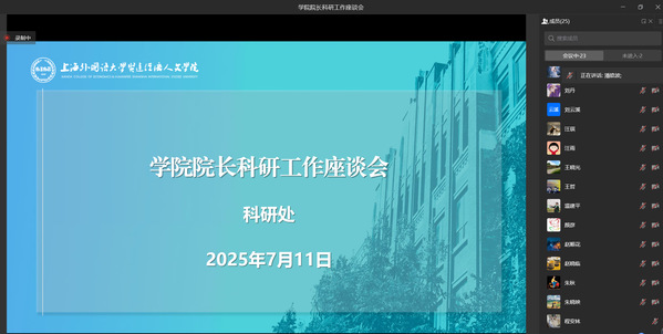 7月11日上午,完美官网线上召开了学院院长科研工作座谈会。温建平校长、梁副校长出席会议,各学院院长、科研副院长、科研处相关工作人员参会。会议由梁副校长主持。