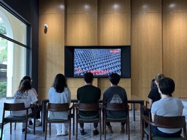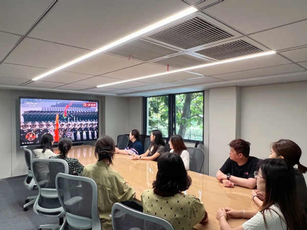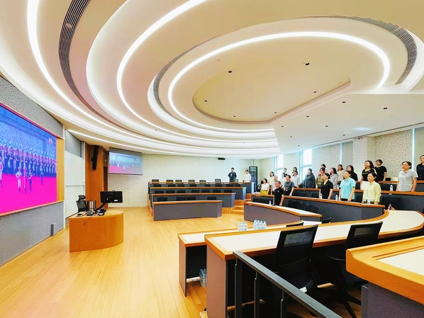9月3日上午,纪念中国人民抗日战争暨世界反法西斯战争胜利80周年大会在北京天安门广场隆重举行,贤达师生以多种方式收看实况直播。校党委书记赵荣善,副校长、党委组织部长、国际教育学院长陈应,校工会主席、党委宣传部长、国际交流学院党总支书记王磊以及部分中层管理人员、党务干部在崇明校区商管楼328教室集中观看直播,一同沉浸式感受这场铭记历史、缅怀先烈、珍爱和平、开创未来的盛会。师生们纷纷结合自身学习和工作实际,就相关热点问题展开研讨交流,畅谈观礼感想。