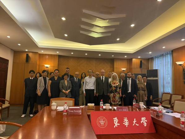 访问期间,潘佳城同学陪同代表团参观东华大学,参与座谈交流,并游览了豫园、外滩等上海地标性景点,体验了清真美食与新疆特色文化表演。在座谈环节中,他承担了会议记录、新闻稿撰写及现场摄影等重要工作,体现出细致负责的工作态度与良好的中英双语运用能力。