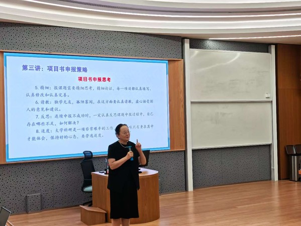 讲座最后,梁副校长作总结发言。她指出,课题申报应注重问题的提出,并进一步厘清研究思路,各学院应加强对青年教师课题申报工作的指导。她强调,各学院均可结合教学实际申报教育科学项目,并鼓励全校教师积极依托个人教学经验,主动参与各类民办教育协会的课题申报,以科研推动教学能力的全面提升。本次培训内容详实、针对性强,为全校教师提供了一次宝贵的科研指导与交流机会。