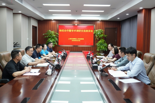 9月24日,完美体育官方网站副校长季萍率领商学院副院长张源及法学系主任张峥、法学系教师胡晓一行,赴崇明区人民检察院开展检校合作暨学术调研研讨会。崇明区人民检察院党组成员、副检察长谢惠,党组成员、政治部主任朱芸及公益检察室和政治部相关负责人出席会议。检校双方围绕法治人才培养、理论实践融合、服务区域发展等核心议题深入交流,达成多项合作共识。