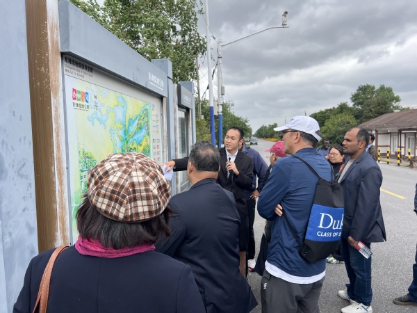 上午10时,考察团首先抵达东滩湿地公园。四位同学以流利、标准的英语,为外国专家介绍了湿地生物万象馆、潮汐湿地保育区等重点区域的生态修复技术与管理模式,阐释了湿地在碳汇调节与候鸟保护中的关键作用,并协助中外学者就“河口湿地生态保护国际经验”展开深入交流。