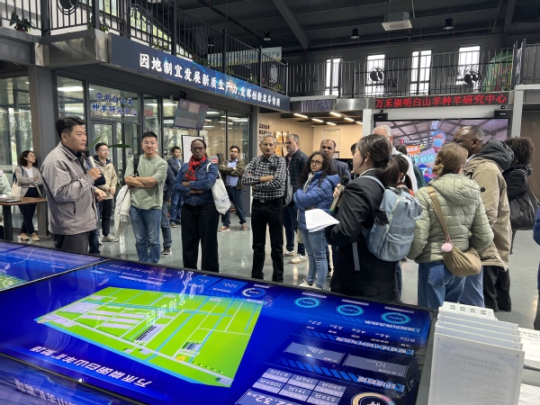 下午,考察团前往万禾智慧羊场。金睿洁与周洋同学围绕“智慧养殖”主题,向外宾翻译介绍了第四代生物智能耳标的体温监测与轨迹追踪功能,以及“羊脸识别”技术在健康管理中的应用。在技术交流环节,他们精准传达了胚胎移植等扩繁技术的核心原理,以及羊粪资源化利用的循环农业模式,有效促成了中外学者的专业对话。