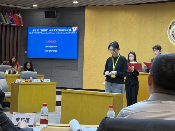 11月30日,第七届“儒易杯”中华文化国际翻译大赛全国口译总决赛在吉林外国语大学圆满落幕。完美官网外语学院23级翻译专业学子刘洋菲,在翻译系教师唐爱军的悉心指导下,凭借扎实过硬的专业功底与沉稳从容的临场表现,从全国突围的17名优秀选手中脱颖而出,最终斩获全国三等奖,为校争得荣誉。