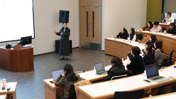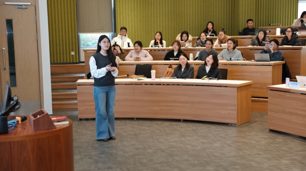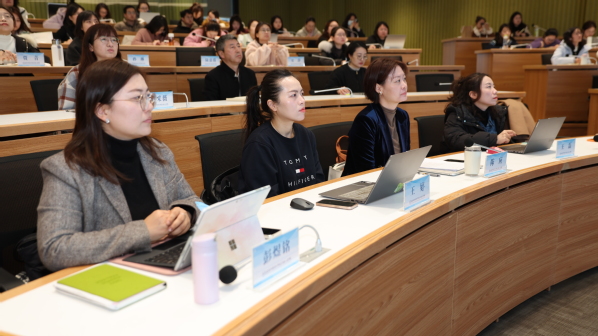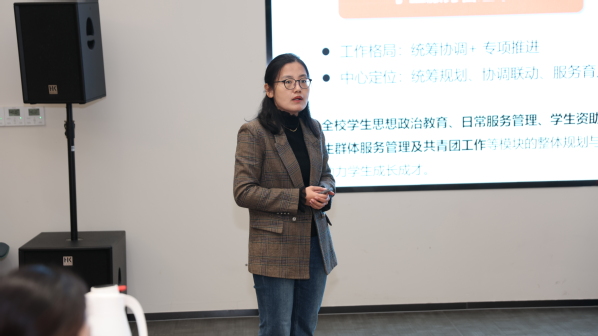 在经验分享环节,在2025年市级辅导员职业能力赛事中取得突破的辅导员代表依次登台,分享了她们的备赛历程与心得体会。外语学院蔡烨老师、数据科学学院王梓杉老师结合参加上海市民办高校辅导员大赛的经历,从理论学习、案例研讨、谈心谈话技巧等方面,详细讲述了备考策略与实战感悟。