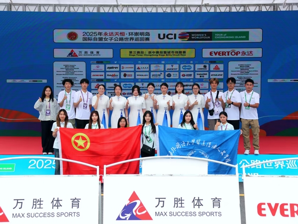 艺术与传媒学院伍映权同学说,他希望能以自己的青春力量助力每场赛事顺利开展。他愿以热情与坚守为选手护航,在服务中传递温暖,展现大学生志愿者的良好风貌。正是在一次次参与体育赛事志愿服务的过程中,他逐渐爱上体育,并将专业所学与心中热爱相结合,用镜头定格赛场的精彩瞬间。他拍摄记录的2025环崇明岛国际自盟女子公路世界巡回赛照片,在2025年上海市“阳光体育”大学生志愿者优培计划暨第五届上海市高校体育新闻大赛中斩获一等奖。